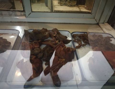 路过温江,想着万春老卤挺有名气的就在网上搜了这家。这家离温江区人民医院挺近的,门脸比较小不太醒目。环境有点脏,买了卤肉和卤猪蹄,都是40元一斤,味道过得去,就是秤要少一点,不到一斤老板也算一斤,以后不会去。