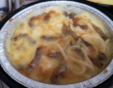 分量其实还算是不错的,中午吃饭都没有吃完一个饭,上面的芝士也还是蛮多,小吃可以选择鱼蛋跟香肠,意粉味道也挺好,比较推荐白汁。