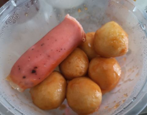 中午吃饭都没有吃完一个饭,上面的芝士也还是蛮多,小吃可以选择鱼蛋跟香肠,意粉味道也挺好,比较推荐白汁