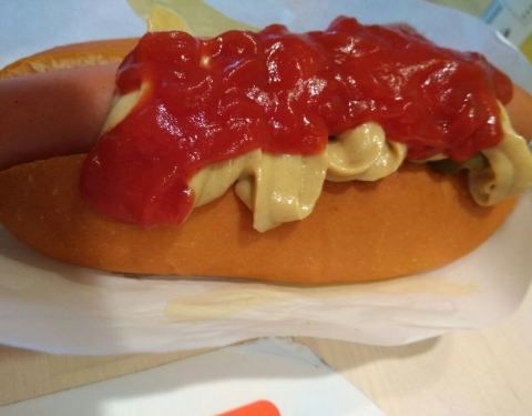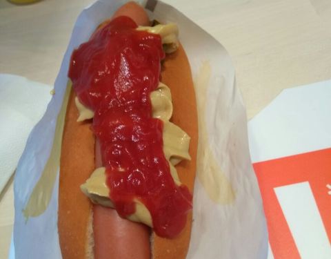 宜家餐厅很火,外卖也超级火,热狗性价比比较高,五元酱汁随意添加,芥末酱与番茄酱两种,热狗肠衣比较厚,加了洋葱酥与酸黄瓜,洋葱酥口感不错。气泡水也不错,总体来说性价比比较高