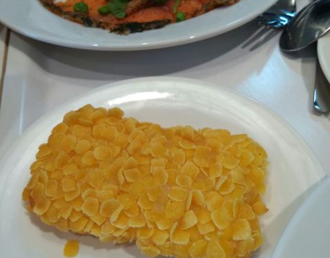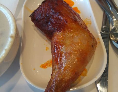 人特别的多,周末实在夸张各种排队,之前吃过一餐,随便吃了点。蓝莓蛋糕是送的,其实不太好吃,好在便宜。鸡腿这次也吃腻了,肉丸子短时间都不想吃,蘑菇汤还可以,总体来说,累了歇歇还行,带着期望去就算了