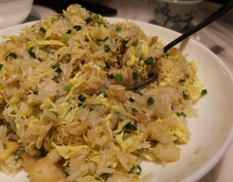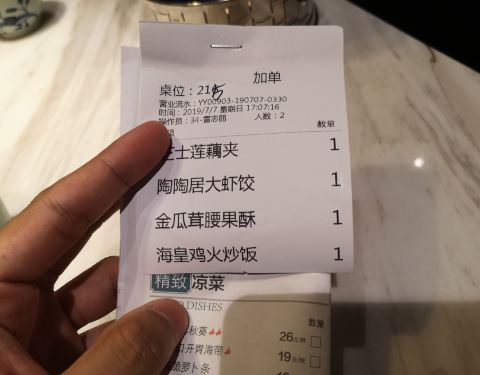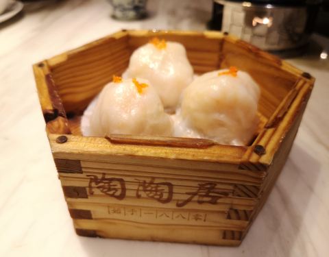 是想过来万国广场这边买衣服的,逛着逛着就已经到了晚餐的时间了,还好,就是万国广场这边吃东西的地方特别的多,所以也不想出去,另外找了就直接上来陶陶居这里,老字号,有保证。 (陶陶居) 陶陶居现在的新店也是越来越多了,比起以前比较老气的在上下九,这还真的是时尚多了,这边的这一家也是分店来的,虽然不算是特别的大,但是每天都有人排队的。 万国店的环境还算是可以的,跟环市东的那家差不多,五点才开,在门口等了会,里面用了广府装修。 (虾饺) 陶陶居的虾饺肯定就是非常好,可以说是广州做得最好的虾饺,皱褶也是有讲究的,虾肉紧实,只有三个,弥足珍贵。 (海皇鸡火炒饭) 本来还跟老婆说不想吃炒饭,她说,这里的炒饭好吃,就尝试一下吧,没想到还真的是特别的好吃,可以说是我最近吃的炒饭,里面最好的一个,鸡蛋形态特别,用料多,口感一流,一个人吃了三碗饭。 (金瓜腰果酥) 想吃一下一些比较特别的东西,所以就点了这个比较冷门的,味道也还算是可以的,金瓜也就是南瓜,松软,好入口。 (芝士莲藕夹) 这个也是相当不错的一道菜,芝士咸咸的,非常的开胃,就是分量不是特别的多,再来多几个的话,也能够吃完。 (服务) 就还算是可以的,除了最后的那个甜品,上菜有点慢之外,其他都挺快的。 (性价比) 人均70多,其实也算不上多便宜了,不过这边的东西都挺好吃,所以也就不计较这个了。