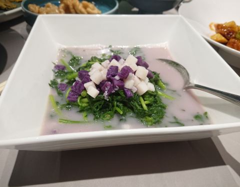 又是人山人海的店,炖汤还不错,啫啫生菜煲是上桌演示的,味道一般,萝卜条量好大,马蹄糕好吃,一口酥炸豆腐也不错。甜品相对一般