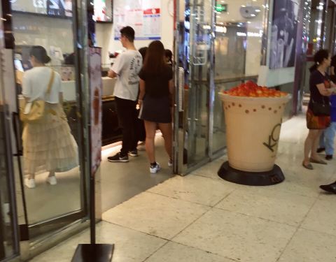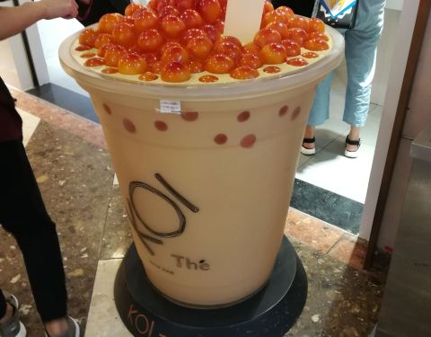 这家位于食通天美食广场内的KOl是整个花城汇里面最大的一家,店们招牌的打打杯珍珠奶茶模型让人一...