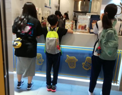 装修风格与其他分店的如出一辙,最大的标志便是门口那杯大型的珍珠奶茶模型,很多人喜欢和它合影,店内依旧以学生顾客为主,可以看得出性价比很不错。