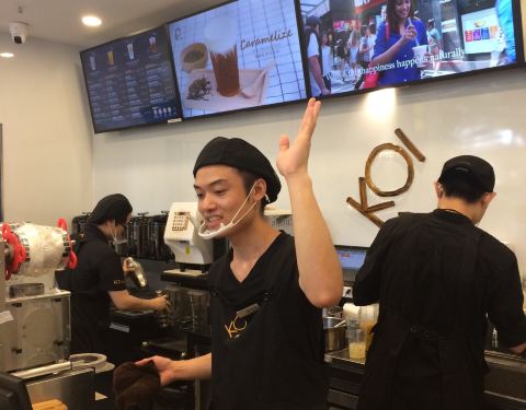 这家位于食通天美食广场内的KOl是整个花城汇里面最大的一家,店们招牌的打打杯珍珠奶茶模型让人一眼就能认出这家店和店里主要热销的产品,还有不少年轻人喜欢和它合影。