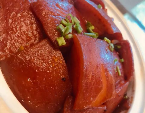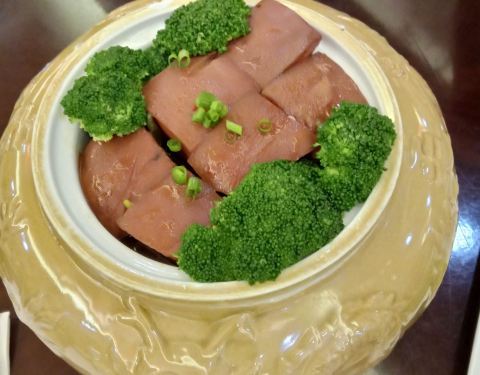 整个恒大酒店感觉相对好些的就是这家毛家饭店,红烧肉确实没让人失望,肉块肥瘦相间,吃起来不觉得油腻,满嘴浓浓的肉香味,值得推荐。臭豆腐还蛮好吃的,酱料也不错。