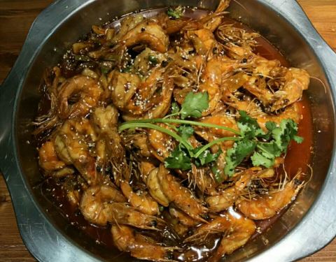口味一流的麻辣鲜香俱全的虾锅,还可以涮肉蘑菇青菜。吃法很新颖,生意很好,有时需要等座位。比教喜欢微辣锅然后配上杏鲍菇鸭血豆腐还有冻豆腐。不错。