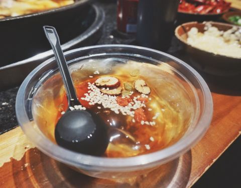 - 万能调料还解辣,这里也只有这一种调料… 这里鸭血很好吃,久煮还是很嫩, 还有鸭胗,烫几秒就可...