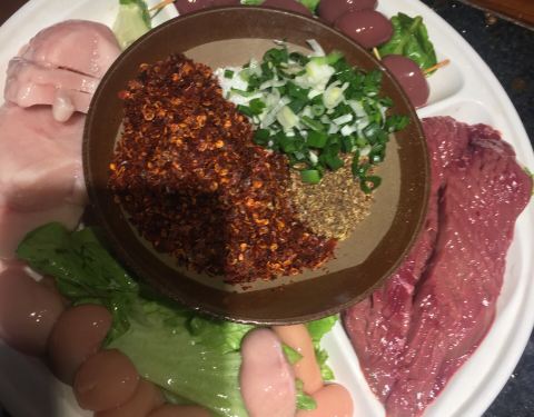 万能调料还解辣,这里也只有这一种调料… 这里鸭血很好吃,久煮还是很嫩, 还有鸭胗,烫几秒就可...