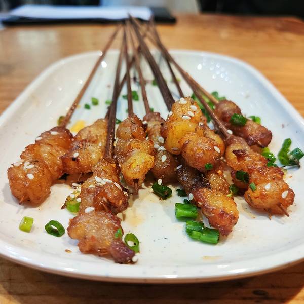 韭菜鲜嫩多汁,肉串没异味,部分菜品可以半份的点,这个设置就比较人性化了。上菜速度很快,环境好,推荐