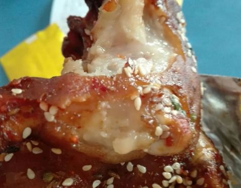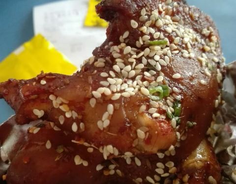 ...辣猪蹄”匆匆忙忙打包带走,现点现烤的猪蹄还带着热气,装在他们特制的包装袋里,免费打包,值得称赞