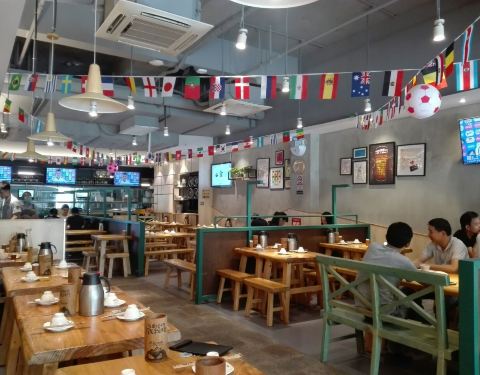 在网上团购了一个“香辣猪蹄”,发现“木屋烧烤”的分店还不少,岗顶都有两家店,那天正好去电脑城,就顺便过来电脑城对面的这家“岗顶二店”。店内环境还不错,干净卫生,恰逢世界杯期间,布置了一番,墙上电视...