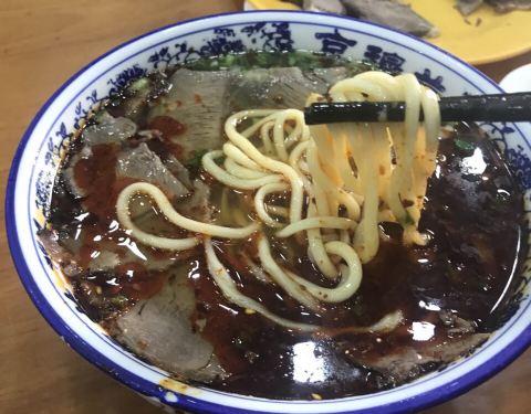 就在住宿的酒店旁边,洗车空隙和朋友一起过来吃个面。店内收拾的很干净,面上的也比较快,非饭点去的,所以人不算多。 标准7元/碗的「牛肉面」要了三碗,又加了半斤牛肉,1.5元/份的凉菜真心便宜。不过这面汤不够香,我在兰州吃了好多个品牌,他家算非常普通的一家,不知道朋友为啥突然想起领我来这里专程吃。