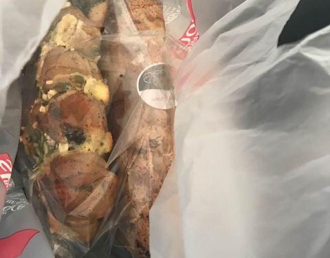 工作人员装袋时候手碰到面包,有点不卫生。