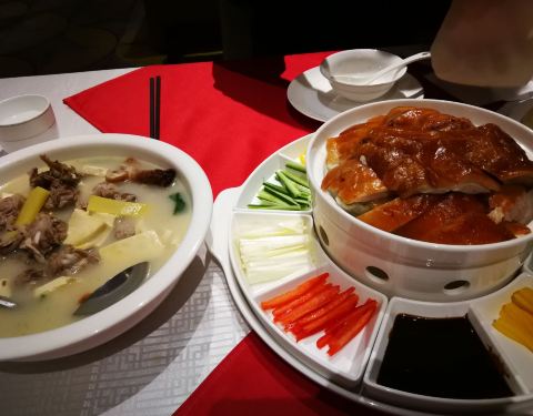 - 用餐环境很好,只是出品卖相,和味道有点差距,这款烤鸭,端上来时已经是凉的,也不是像其他烤鸭店那...