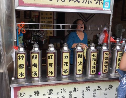 ...根据不同需求调配各种凉茶,我们一行人,挤满小小店里,根据喝很多凉茶的同事认为,凉茶真的蛮有功效