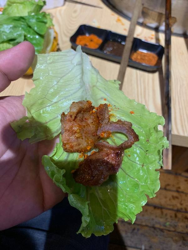 同事强烈推荐得一家烤肉店,周末有时间前来探店。五花肉烤熟后会帮忙剪成小条,方便客人食用,服务还不错