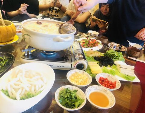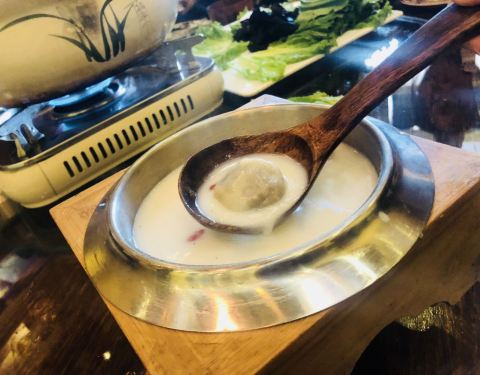 【位置】拉色波商业街的门头走到分岔路口,往右前方下坡去,到河边左转,第一家就是了。找不到的话,打电话,服务员会来接。 【环境】精心装修,非常有藏族风情。 【服务】旺季八月的中午,竟然只有我们一桌。老板亲自上阵,给我们一一解释菜单上的藏菜,门口有美丽的藏族姑娘迎宾,两位服务员也跑前跑后。不过她们显然还不太适应我们一下子来了21个人。 【菜式】非常好吃的藏餐。 【藏式汤圆】糌粑馅的汤圆可是得了大奖的。牛奶的汤特别好喝。 【扎藏牧布甜茶69元/大】【酥油茶49元/大】都好喝得不得了,关键是量非常给力,一大暖壶,我们每种倒了21碗还有多啊! 反正每样都好吃!