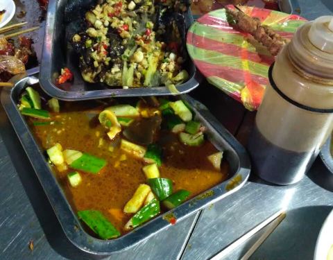 - 味道挺不错的,特别是加了孜然很香,鸡爪和小龙虾,羊肉串之类都很好吃,素菜也烤得不错