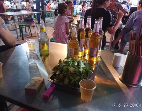 生意挺火爆的,是一个大排档形式,性价比还算是高吧?味道挺不错的,特别是加了孜然很香,鸡爪和小龙虾,羊肉串之类都很好吃,素菜也烤得不错。