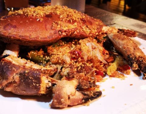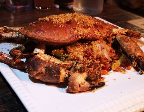 这个店富有当地特色的装修,人挺多,面包胡椒蟹必点,十分好吃,价格也划算,才几十元,比起坡那边上...