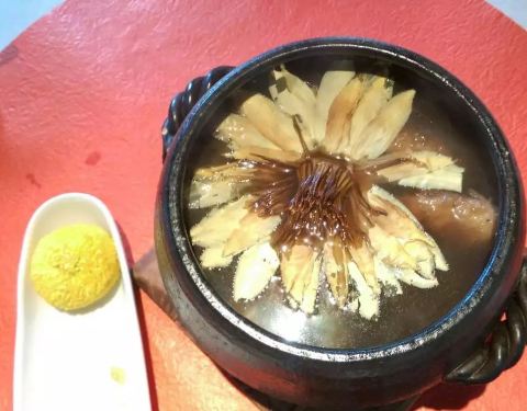 最有名的是莲花汤,招牌菜色令人百看不厌的招牌,整朵干燥莲花,遇热徐徐展开花瓣,重现开花的情景。而莲花当然也是可以食用的。