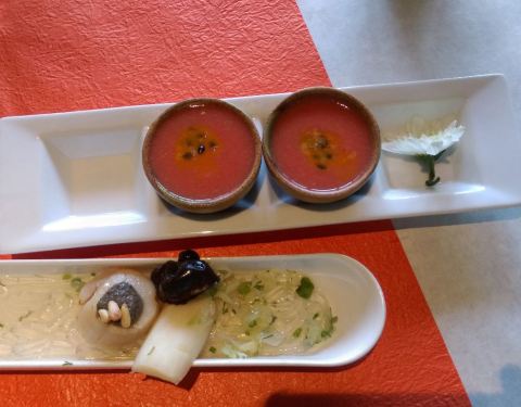 - 桌上竟然摆了本书,仪式感已满溢,食材只用海鲜不用肉类等坚持,道道菜摆盘精致,看得出厨师以作品的...