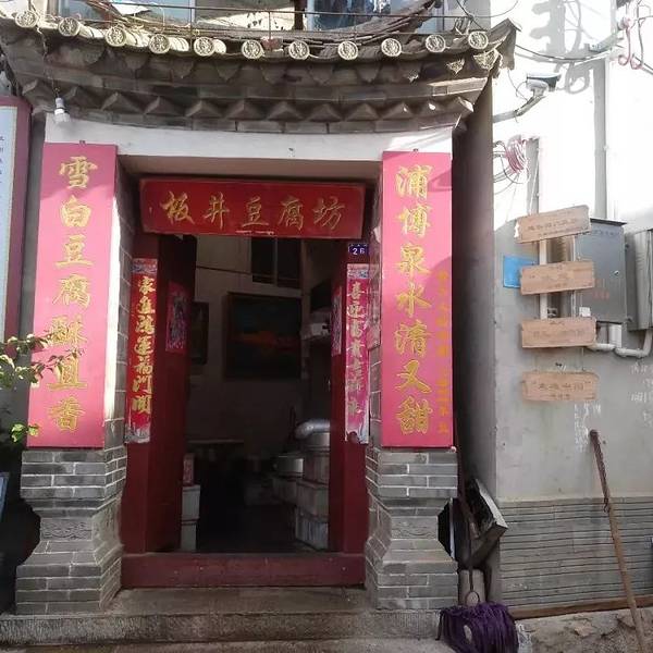 大板井的对面,就是曾上过《舌尖上的中国》的板井豆腐坊,大名鼎鼎的建水西门豆腐就是产自这里。用古井水做出的豆腐格外美味 ,板井豆腐坊每天从早晨开始提供自助的豆腐脑和豆浆,5元一位,售完即止。