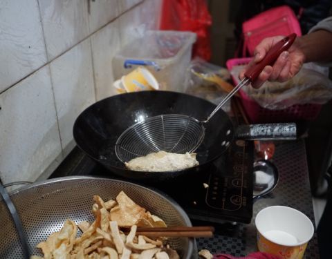 5块钱随便品尝,听司机师傅说原来都是免费的,但来的人太多了……手工豆制品,小小的作坊,紧邻大坂井,井水做的豆腐。无论是豆浆,豆花,豆皮还是豆干都很好吃,做法也是原来不知道的,店主很耐心的给我们示范。