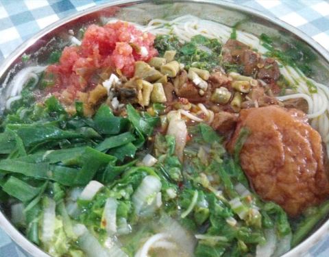 这家腾冲小吃,早上上班,路过这里,给朋友打包一份煮米干,朋友说米干味道好,爽口,调料调味调得好,佐料也是放得多一些,同时,又煮了小白菜,真不错。