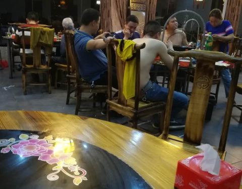 在温泉里面搜索附近美食,这家挨着最近,就来了这家店,环境很好,卫生干净,份量足,点的黄牛肉吊锅,确实挺地道的,肉色很正,看着就有食欲,味道也很地道,跟大武汉吃的牛肉还是有很大的区别的,老板说牛肉是采用当地的黄牛肉,食材正宗,不是水牛或其它牛肉,吊锅主要就是食材,食材不好怎么做都做不出好味道,看来这个老板是做生意的料呢,也是良心商家,泡温泉,吃吊锅建议来这家,推荐黄牛肉吊锅