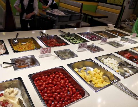 服务有待加强,今天带宝宝去的,和服务员说,多给我个盆子,服务员说有规定,一人一盆,可我带了宝宝...