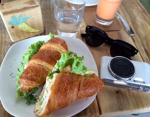 ...咖啡馆,看介绍说沙拉里的番茄是有机种植的,罗马生菜也是,整体挺不错的,生菜特别脆,简餐很有水准