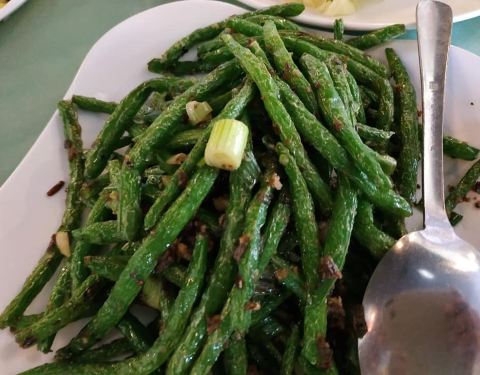 Eggplant weds green beans!! Awesome entree ... Also, try the "hot diving fish".. it's amazingly tasty and spicy