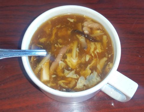 Perfect hot and sour soup, with a great tangy, savory flavor.