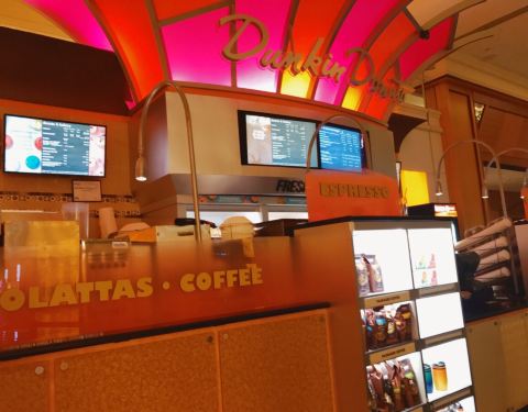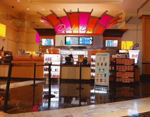 这家Foxwoods casino酒店里的Dunkin Donuts在Grand Pequot Casino旁边,靠近Grand Ballroom。夏天推荐Frozen Coolata冰沙,有很多种口味,除了咖啡、香草,还有各种水果口味。点的西瓜口味还蛮好喝的。店面营业到很晚。