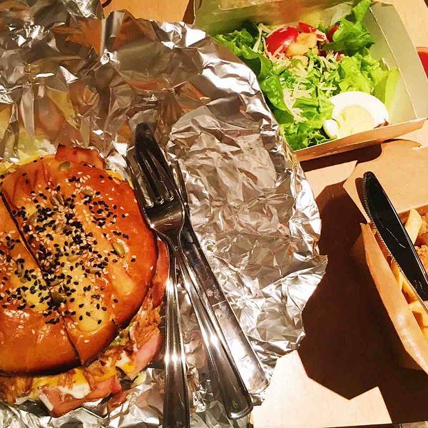 ...为的就是拿大汉堡照片啊,两个人完全吃不了,四个人也是够的,材料超级多 肉也多,配的沙拉也很清口
