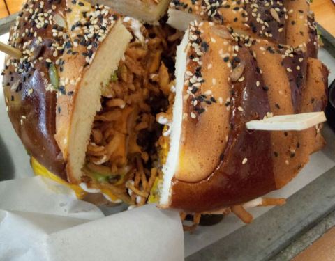 吃过两次,真的很大个,一个汉堡可以三个人吃。汉堡肉饼汁比较丰富,不是干的那种。
