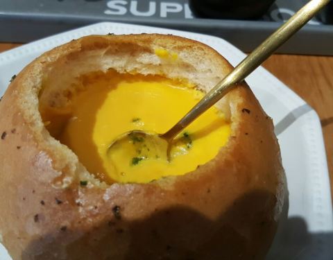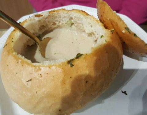 奶油蘑菇汤配蒜蓉面包