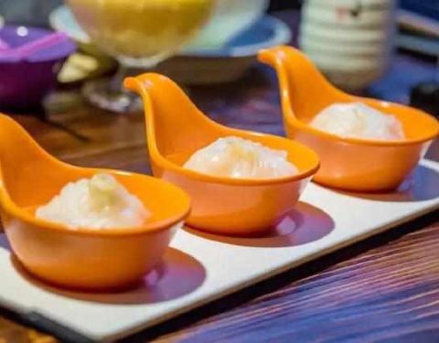 六运特色有机肠,肠衣软糯,虾肉大颗弹牙,包裹的炸物油香油香的,上面的水果酱增加了一些水果香。一口咬下去,口感层次太丰富。其它的点心也好吃。