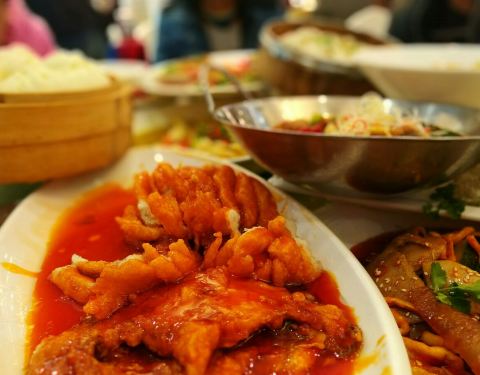 口味比较清淡,菜品非常丰富,店堂很宽敞,装修上档次,适合宴席,婚宴、寿宴的性价比不错。由于婚礼仪式时就开始上菜,而且呈上的速度过快,许多菜品还没来得及品尝就被服务员上的下一道菜遮住了,重重叠叠的满满一大桌。个人比较喜欢的是菊花鱼,花儿型漂亮,汤汁儿是西红柿勾制的荔枝味,咸甜适度,鱼肉细腻、新鲜,一个人吃了半条鱼。糯米排骨很家常、清淡。蒜蓉粉丝扇贝与白灼虾很平常,加上呈上时间长,冷了,有些腥。吃酒席我更看重美食的颜值,味道与服务倒是其次。服务员很热情,迎宾有迎有送,店面形象好。