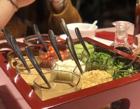 心心念念了好久要去楼上打卡,等了一年多,终于如愿了,当然可能期待大了,所以体验下来也很失望。 「酱料九宫格」依人头收费的,但是真心不好吃,芝麻酱和花生酱只吃出了油腻感,酱油还是不错的,放了点九宫格里...