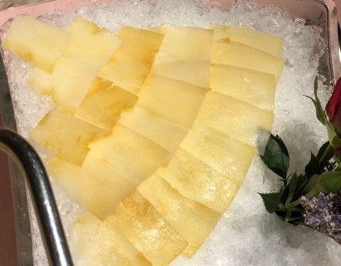 花胶鸡锅底差强人意,牛肉船和蟹腿肉都不错,#冻柠檬茶# 很有特色的说吸管是不锈钢的,温和美味,煲仔饭里面的香肠酒味偏重,花螺小辣后来没吃掉。最后说说餐后送的水果真的是美味,西瓜好甜,最后结账1360,这个价格还不错的说~