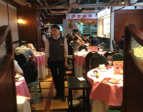 二楼一进门就是浓浓的港式怀旧味儿,围坐在餐桌边的人们熙熙攘攘,每张桌子上都冒着热闹的蒸气,好不热闹