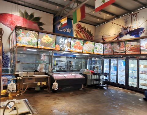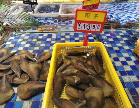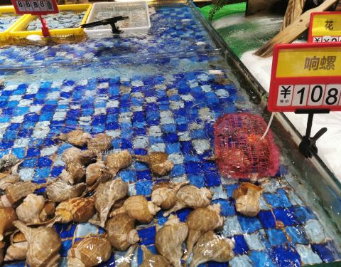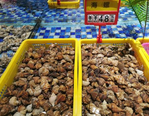 很多海鲜类的卖,可以在场加工,也可以买回来煮