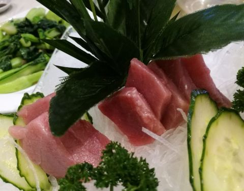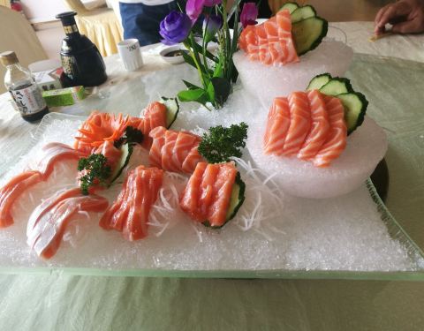 ...刺身,一斤一百六十元,如果在其它地方吃,没有3佰四佰元是吃不到的,而且这里的鱼新鲜,吃起来甘香
