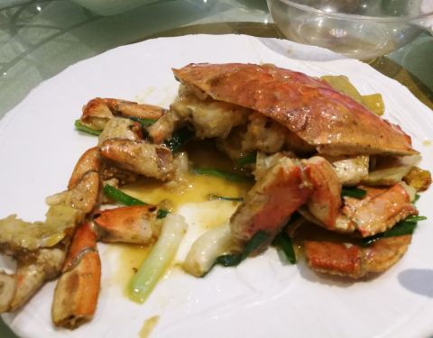 今天看到有澳洲金枪鱼就来品尝一下,168元一斤,刺身食法,因为是冰冻了几天,吃起来就差了一点点,但按照这个价钱,在其它地方是吃不到的,因此还是值得的。另处点了烧鹅,瓜子斑,皇帝蟹,炒迟菜心,煲淋娃娃菜,陈村粉,紫薯搏撑,最后甜品是双皮奶。共花费900元。