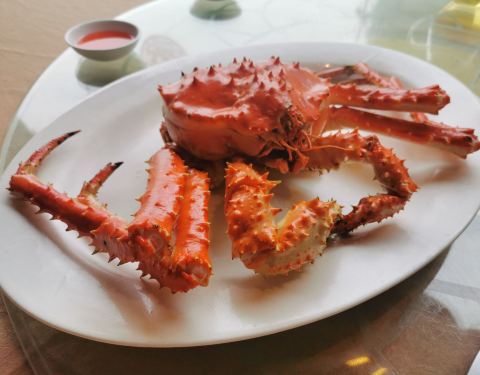 因为是疫情后开市第一次去的,人还是很少,大厅和海鲜池以往的人来熙样的情景不见了。比近二个月来第一次出去吃饭,有点想大撮一顿的想法,所以二个人吃了烧鹅、三文鱼刺身、原只蒸帝王蟹、芝士焗龙虾,今次的芝士焗龙虾不行,这家店不会制作,做坏了,对于不善于制作的店,还是让他们会做的好些。