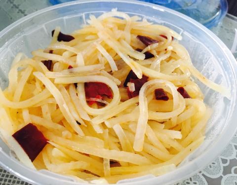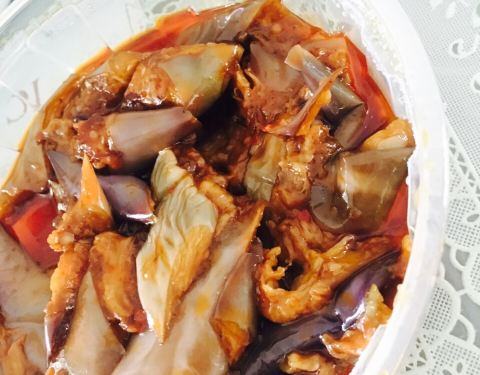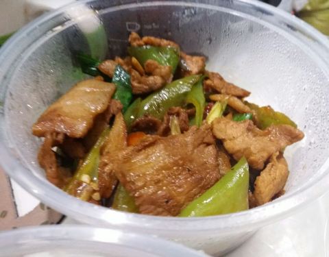 看上去像是办宴席的地方,菜式也比较中规中矩,因此平常吃饭不太会去。不过网上叫外卖的时候发现套餐还不错,就叫了一次,小碗的菜分量也挺可以,味道也还不错。可以作为午餐的选择之一呢。外婆红烧肉里边有豆皮节还有鹌鹑蛋,辣椒炒蛋也是很实在很有味。最爱酸辣土豆丝,炒的很棒。放眼看去,放辣椒的菜还蛮多的呢~